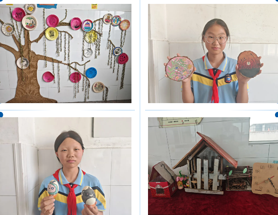 在“变废为宝”实践活动中,同学们化身“资源再生先行者”,充分挖掘废弃塑料瓶、易拉罐、纸箱、木板等材料的再生价值。巧手翻飞间,废弃饮料瓶变成了精致的笔筒和花盆,旧纸箱化身为创意书架和动物造型储物盒,易拉罐经剪裁拼接后成为别致的装饰画……一件件充满巧思的作品,不仅展现了学生们的创新能力,更直观诠释了“垃圾是放错地方的资源”这一理念,让循环经济与低碳生活的理念可触可感。